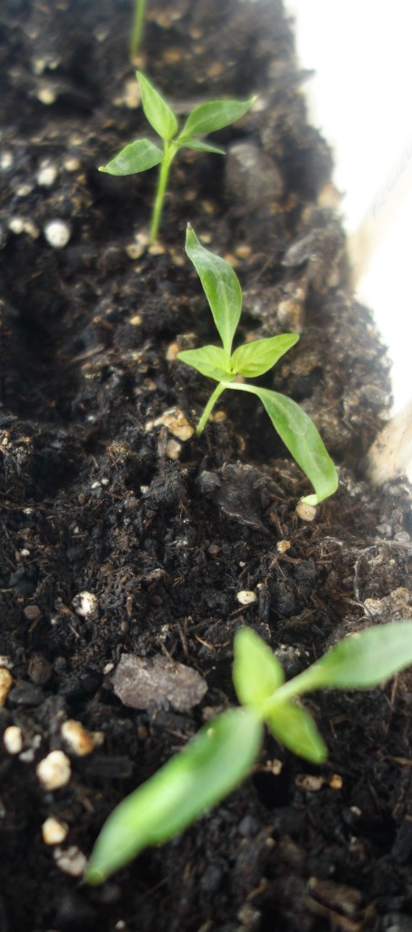 Und so gestalte ich in kleinen Schritten meinen Arbeits- und Lebensplatz. Denke darüber nach, was ich in meinem Leben haben möchte und was nicht. Alles braucht seine Zeit zum Wachsen, und günstige Bedingungen kann man selbst (er)schaffen. Womit wir wieder bei der Natur angekommen sind. Deshalb gibts jetzt noch ein Foto meiner Paprikapflänzchen